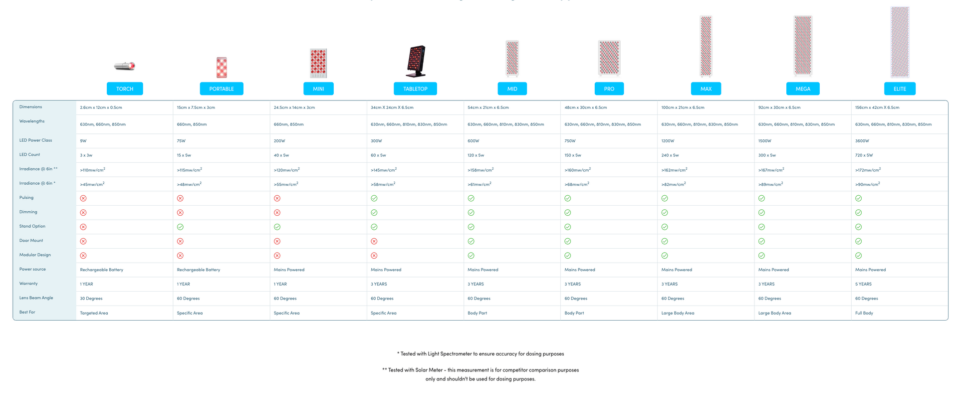 The higher the number, the higher penetration on the skin. The optimal wavelengths for beneficial therapeutic results range from 630nm to 850nm.