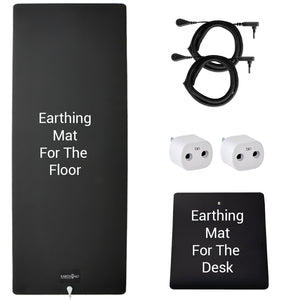 The Universal Mat is ideal for placing under your feet while seated, while the Chair/Mouse Mat is designed for use on top of your desk as a mouse pad or hand rest. Used together, they provide grounding contact for both upper and lower body, even when wearing shoes. This setup may help reduce fatigue, eye strain, tension, and the effects of electromagnetic fields common in office environments.